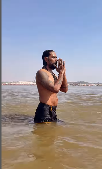 Dressed in an all-black traditional outfit with his face partially covered, Remo attempted to blend in with the crowd. The video captured him praying, taking a sacred dip in the Ganga river, and exploring the area via boat—each moment reflecting the peaceful yet lively spirit of Prayagraj.